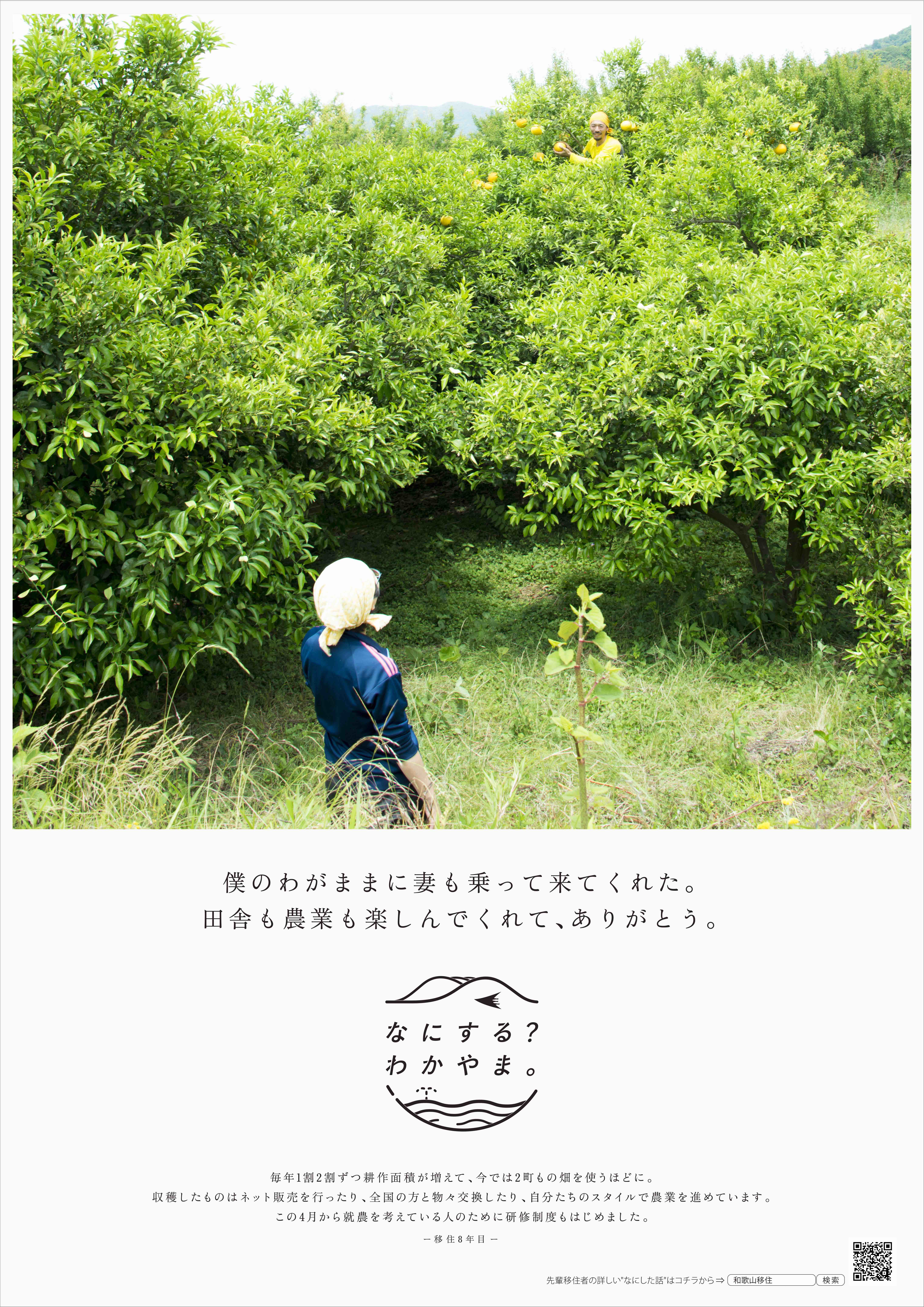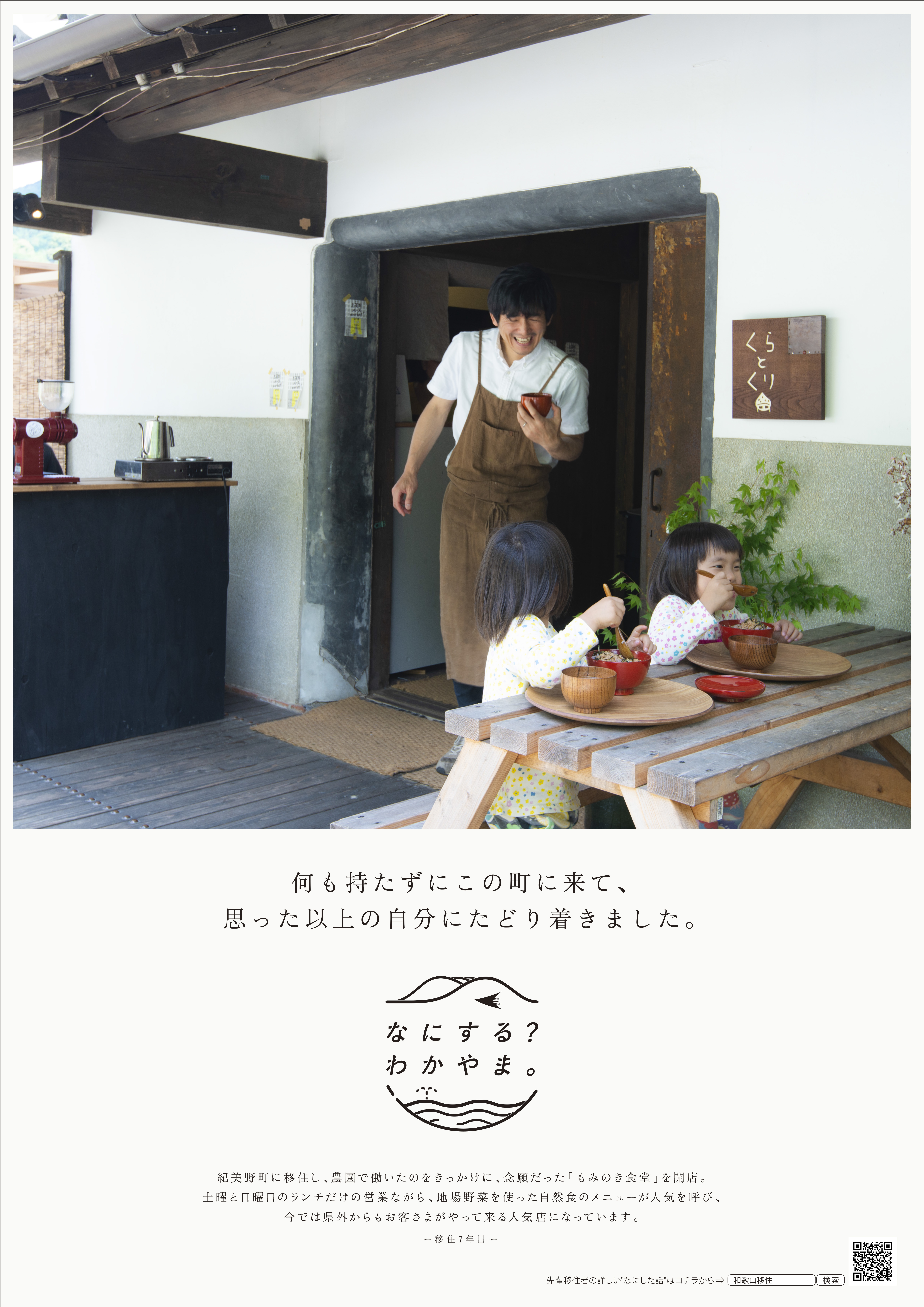 都市部から実際に和歌山県に移住した人を訪ねて制作した、移住促進のポスターシリーズ。