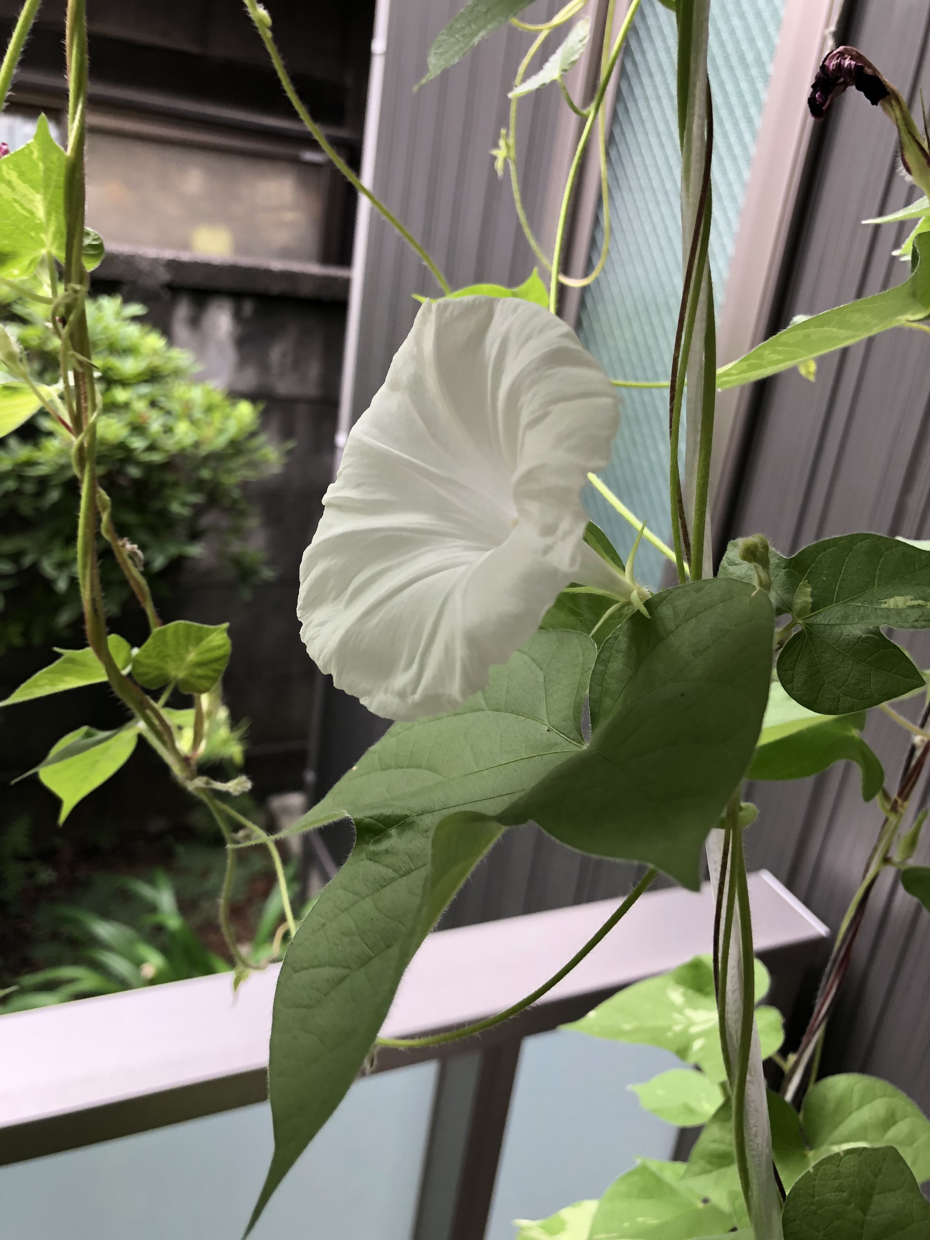 毎朝朝顔が咲くのですが白はちょっと珍しく、